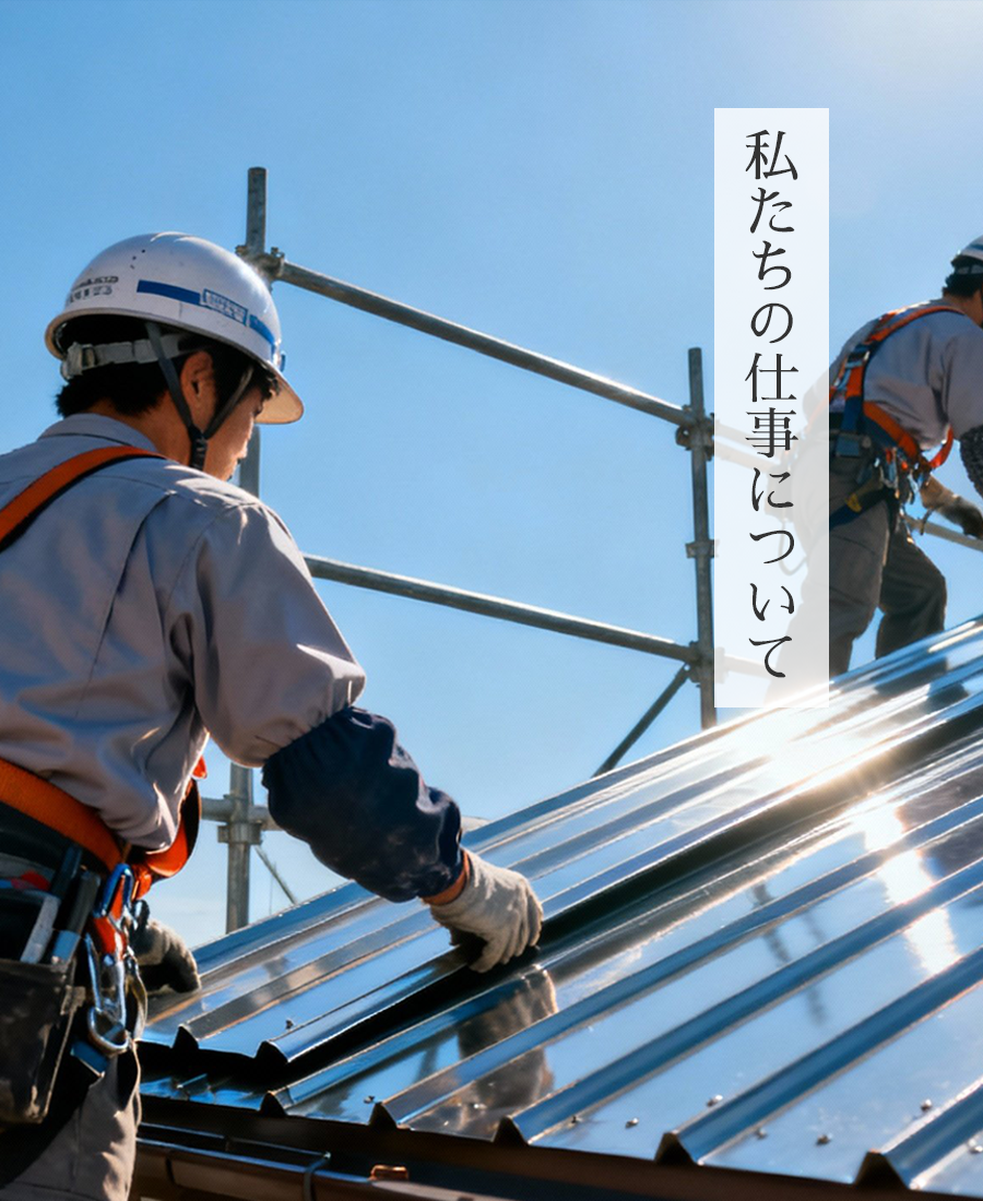 建築板金の技術を基盤に、屋根・外壁・建築工事など建設業全般に幅広く対応しています。
